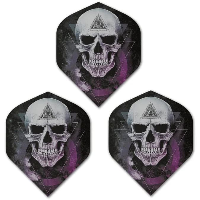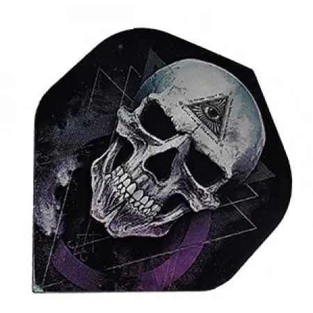 Peer into the unknown with the Alchemy Dart Flights – The Void Edition. These Standard No2 flights showcase a chilling skull design, marked with the Eye of Providence and surrounded by layered geometric shapes.