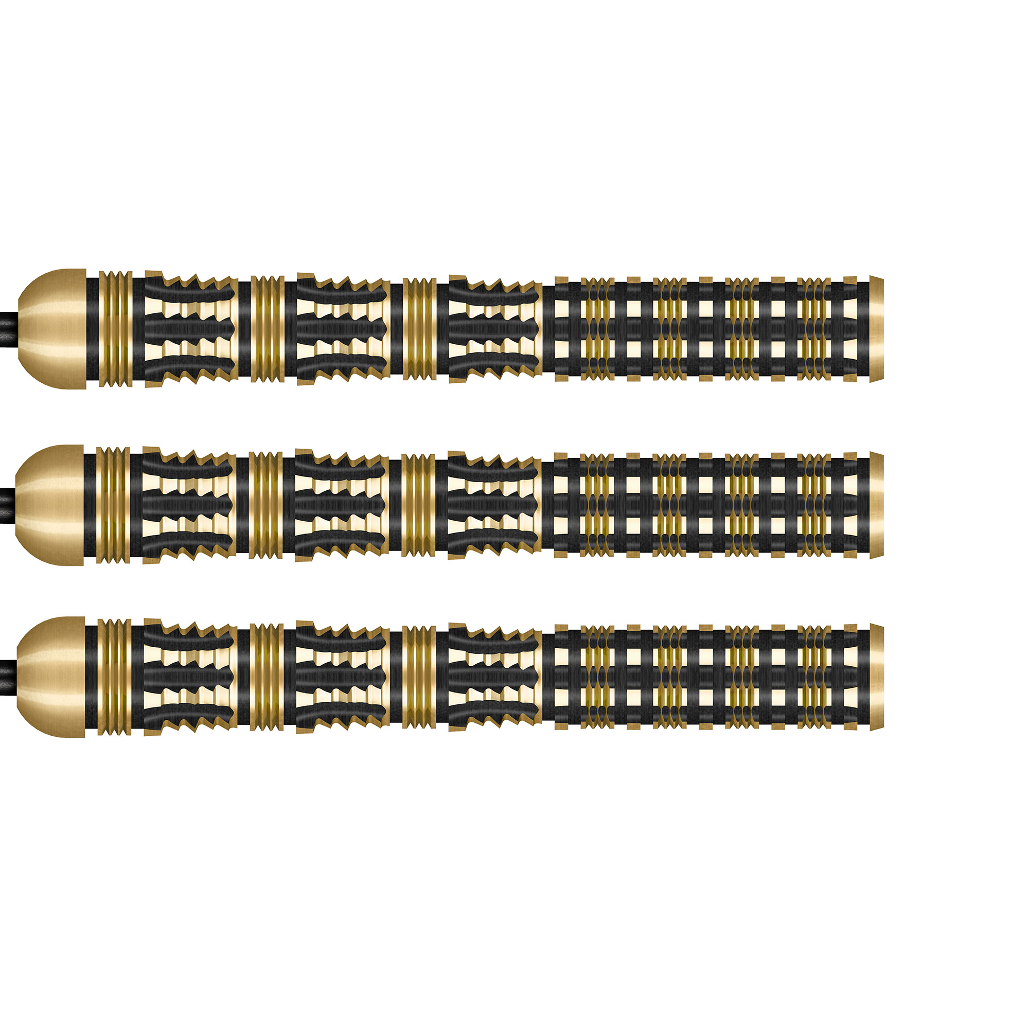 Forged from premium 90% tungsten, the 23-gram barrels provide the perfect mix of strength and balance. The Sheriff’s CNC-machined grip gives you a secure hold, while the copper and black PVD coating adds a tough, battle-worn finish. Thanks to its precision engineering, each dart delivers a smooth release and a consistent, stable flight. This combination helps you stay accurate and confident in every round.