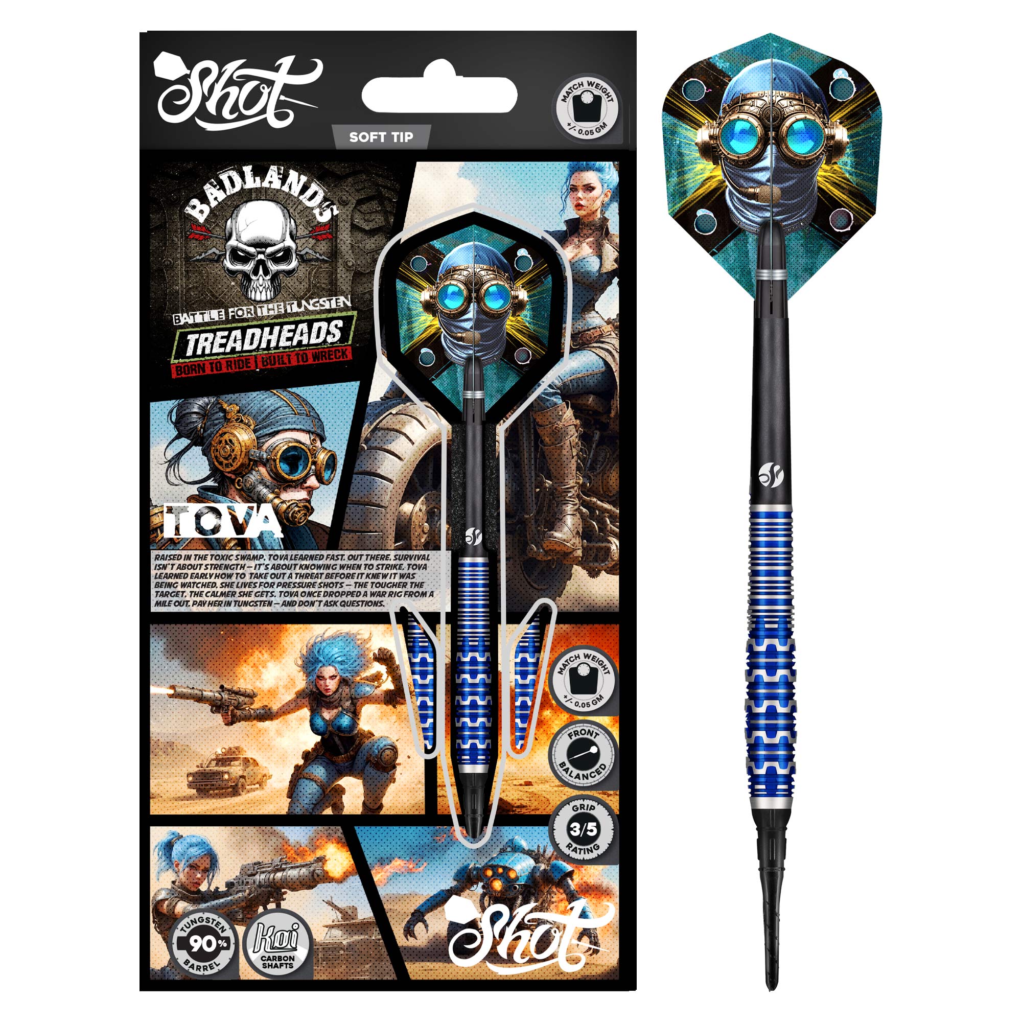 The Shot Darts Badlands Tova Soft Tip Dart Set delivers power, balance, and confidence for players who compete on electronic dartboards. Inspired by the post-apocalyptic edge of the Badlands series, Tova combines sleek design with precision engineering to help players dominate every match.