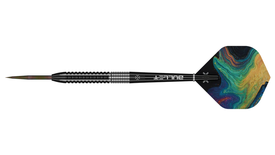 The Bullet Diesel 24g steel tip darts deliver industrial strength performance for players who demand control and consistency. Built from 85% tungsten, the barrel maintains a solid, dependable profile while providing the density needed for tight groupings and confident scoring.