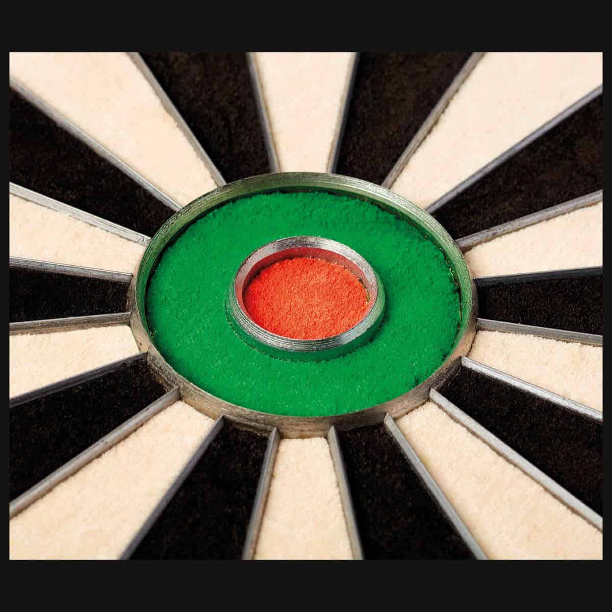 The patented Dual Core technology sets this dartboard apart. It features an outer core optimized for higher compression, reducing surface resistance and allowing darts to penetrate easily for minimal bounce-outs. The inner core absorbs excess kinetic energy, ensuring durability and a longer lifespan, even under intense, repetitive use.