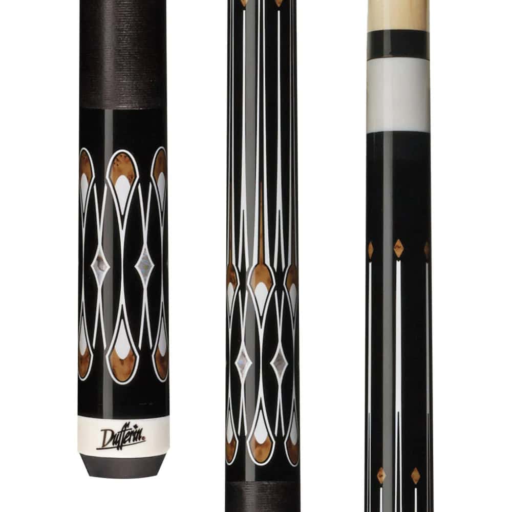 Elevate your game with the Dufferin Black & Curly Maple Cue. Its sleek black and curly maple design offers a striking contrast, providing both beauty and durability at the table.
