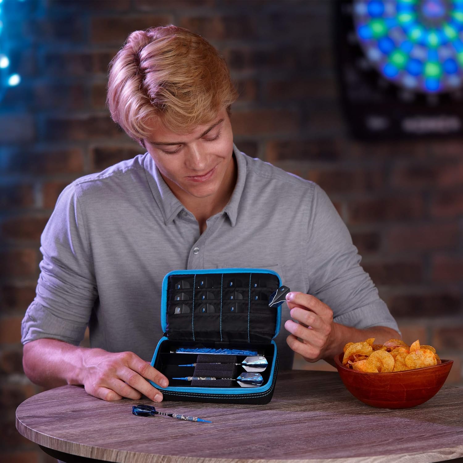 A zippered exterior pocket adds quick access for personal items or frequently used dart tools, while the striking black and Blue color combination and subtle branding give it a bold, modern look. Compact yet comprehensive, the Plazma is ideal for both steel and soft tip players who want maximum organization without bulk.