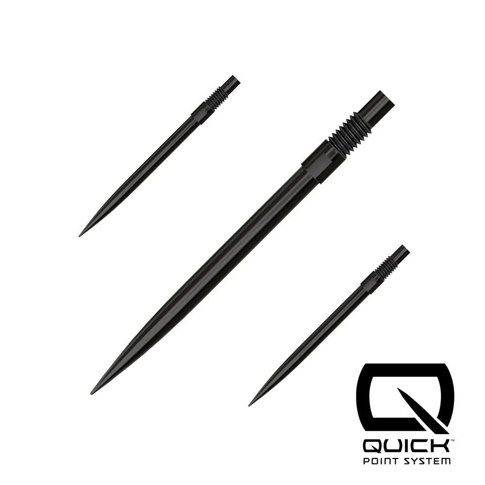 Harrows Quick Point Steel Points are built for players who demand strength, precision, and speed. These premium points feature a no break point design, delivering unmatched reliability with every throw. Crafted from durable, high-grade steel, they combine long-lasting performance with a sleek black finish that looks great on any setup.