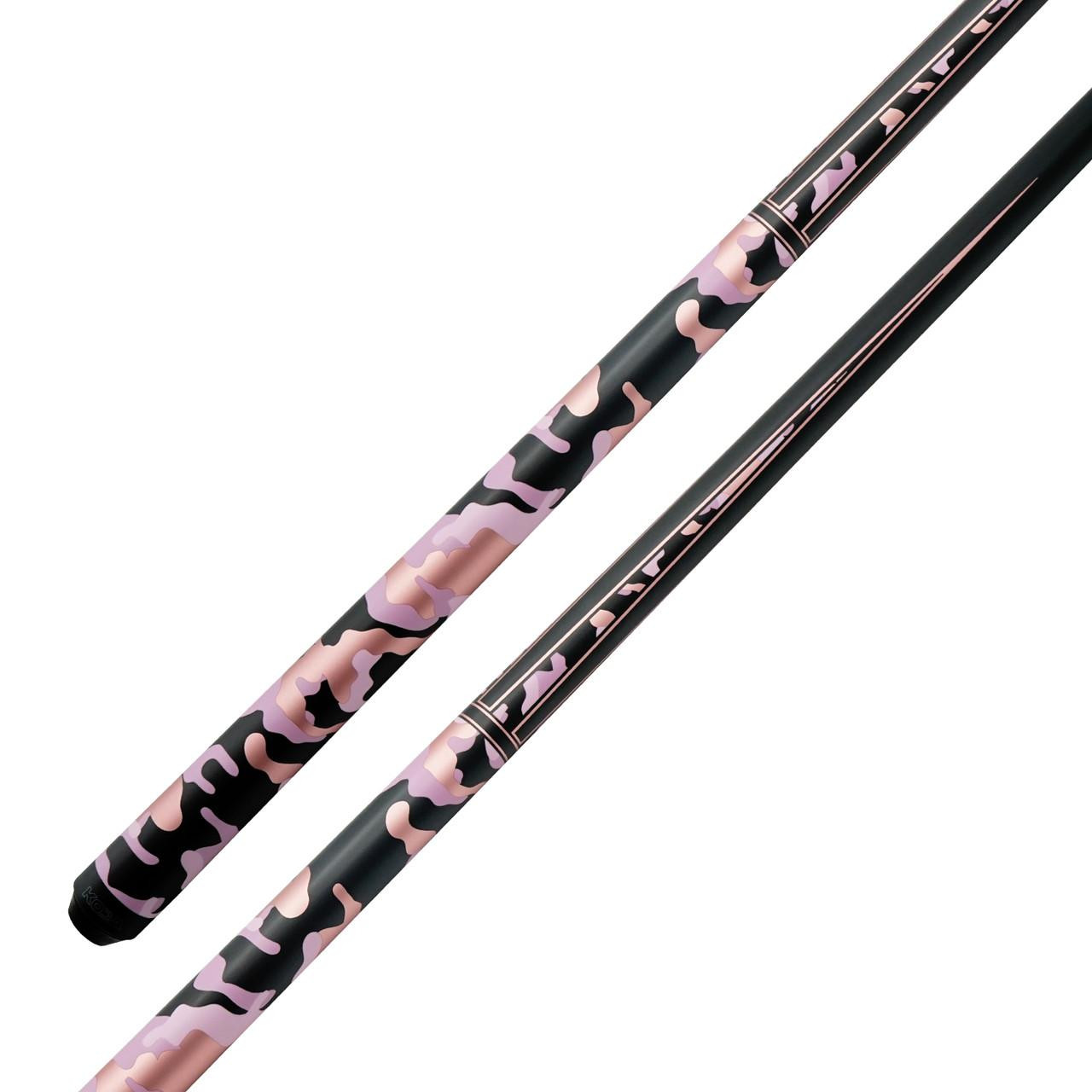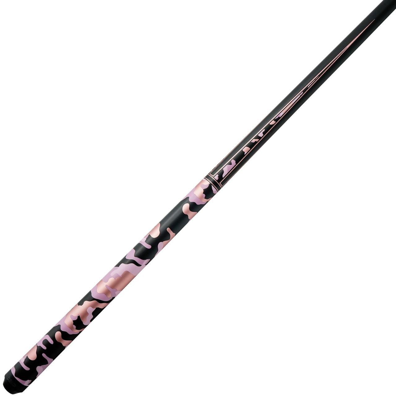 The KODA KDV10 Pink Camo offers a fresh and vibrant look paired with dependable performance. It features a pink and gray camo graphic across the forearm and butt sleeve, giving the cue a bold style that stands out on the table.