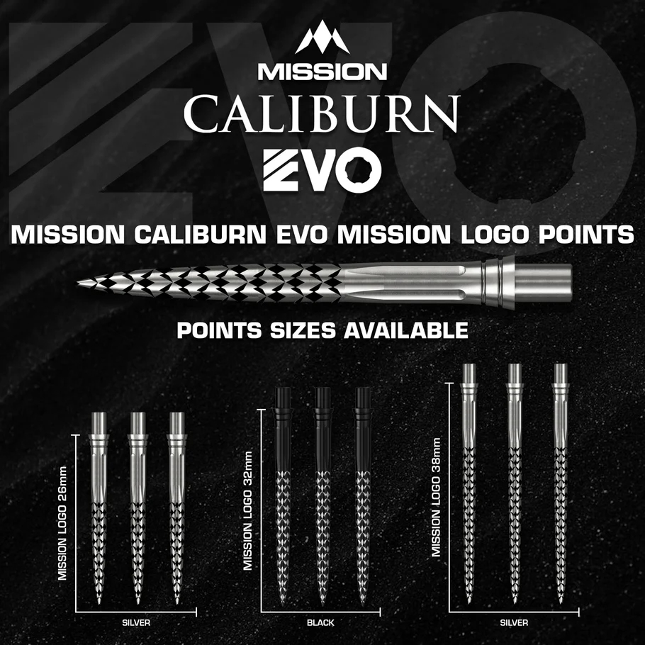 Mission Caliburn EVO Dart Points – Mission Logo – Black – 26mm