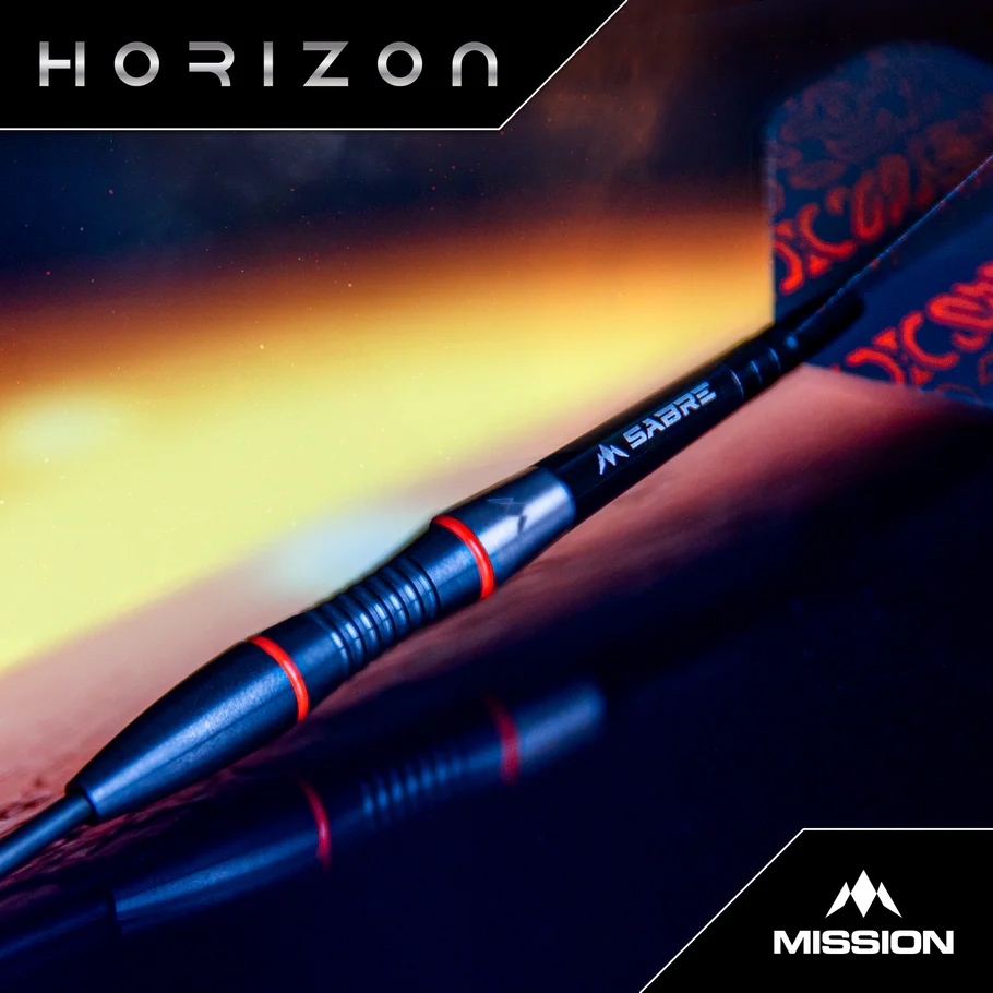 For top performance, each dart comes fitted with short black Mission Sabre shafts that securely hold the signature Horizon flights. Together, they offer reliable stability and consistent flight paths during play.