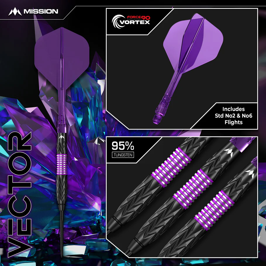 Mission Vector Darts – Steel Tip – 95% Tungsten – Black PVD & Purple Electro – 24g