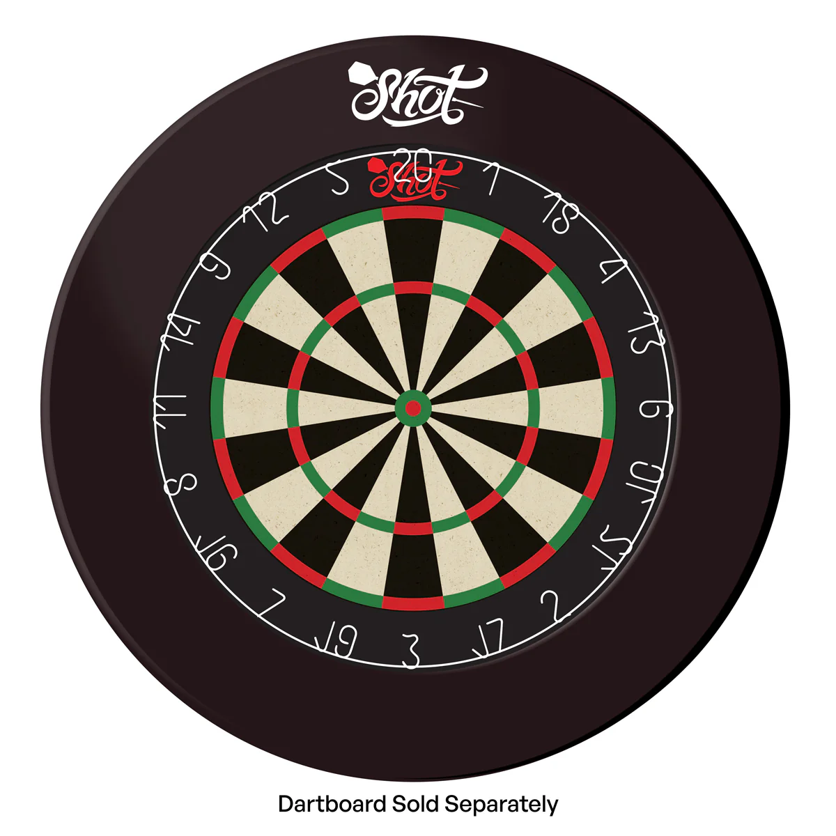 Elevate your dart game with the Shot Darts One Piece Dartboard Surround in vibrant black. This durable and stylish surround protects your walls from stray darts. With a professional-grade design, you can enjoy a more authentic and enjoyable playing experience.
