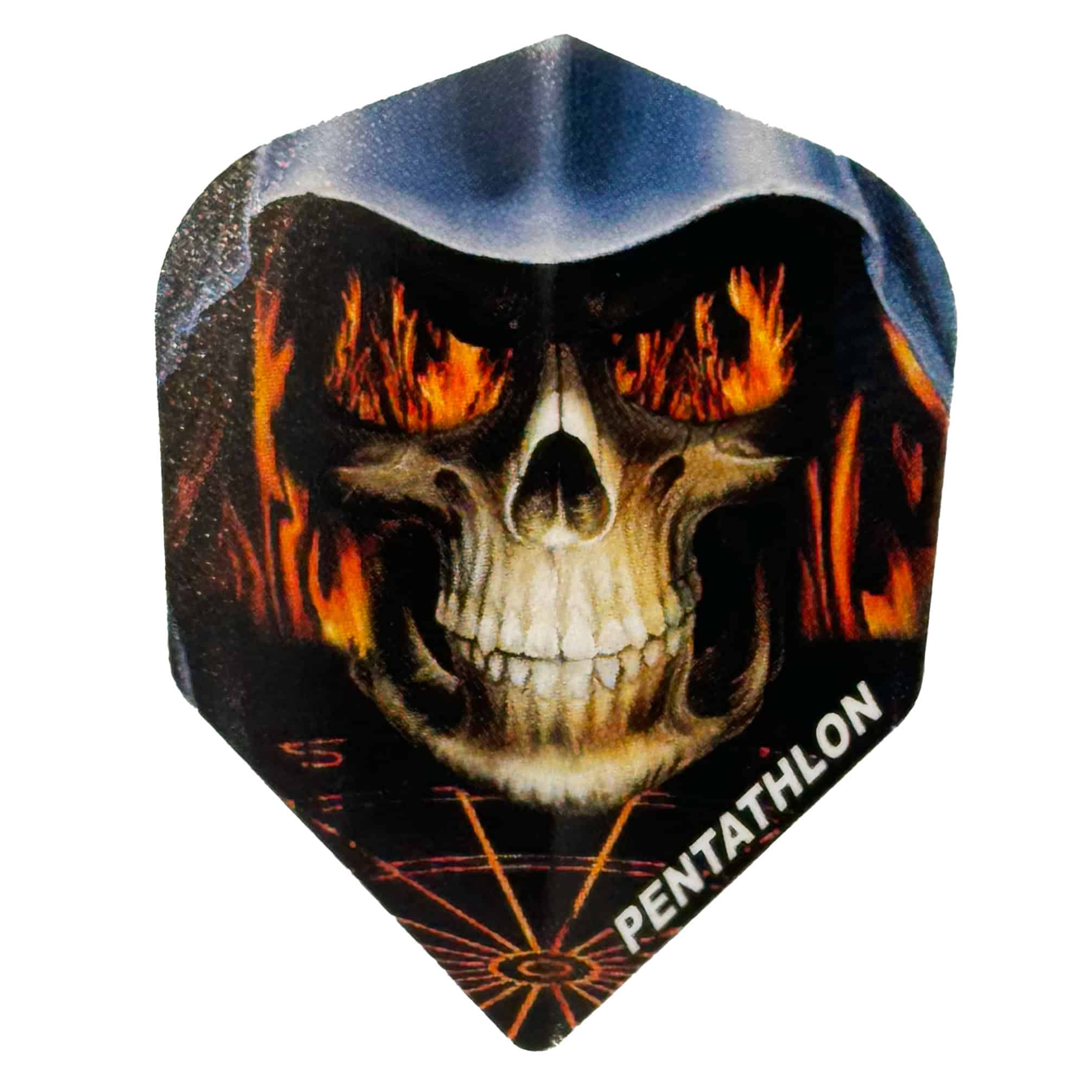 Pentathlon Dart Flights - 100 Micron Shape With Flaming SkullPentathlon Dart Flights – 100 Micron Shape With Flaming Skull