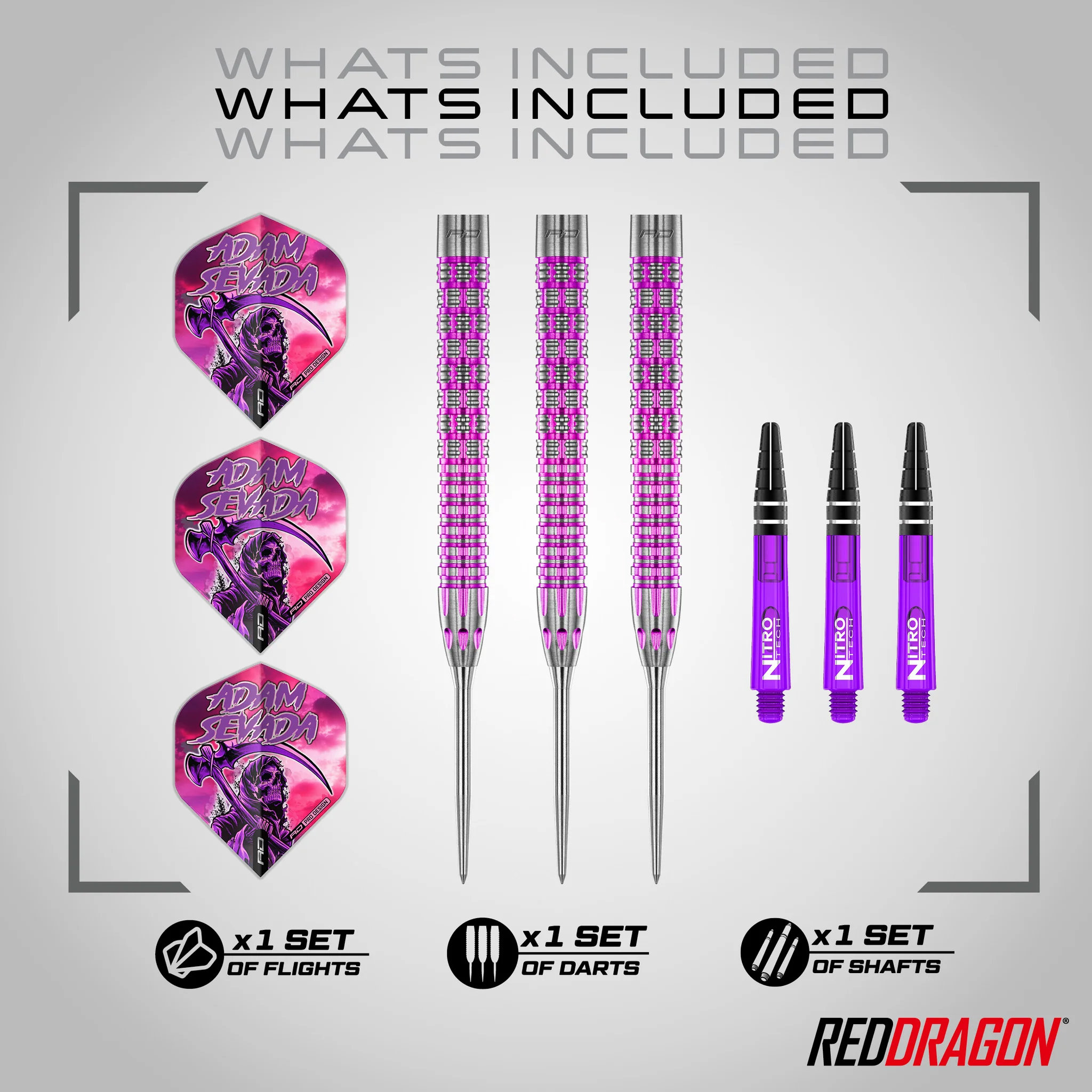 • 3 x Red Dragon Adam Sevada steel tip darts (22g)