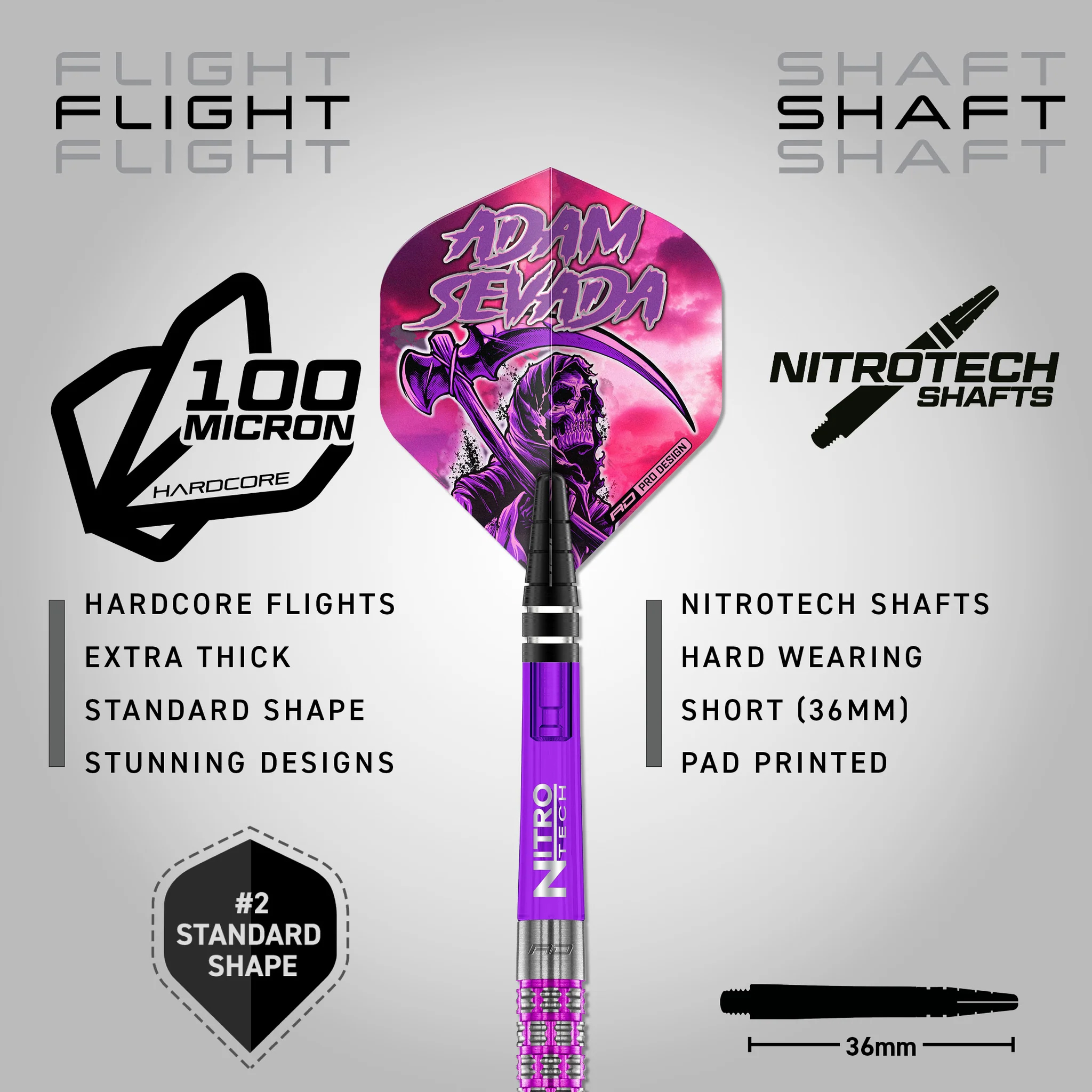 Inspired by the royal purple of ancient history, the Adam Sevada dart set draws on a color long associated with power, prestige, and authority. That heritage is paired with modern engineering to deliver a dart that feels refined in the hand while remaining strong, stable, and competition-ready on the oche.