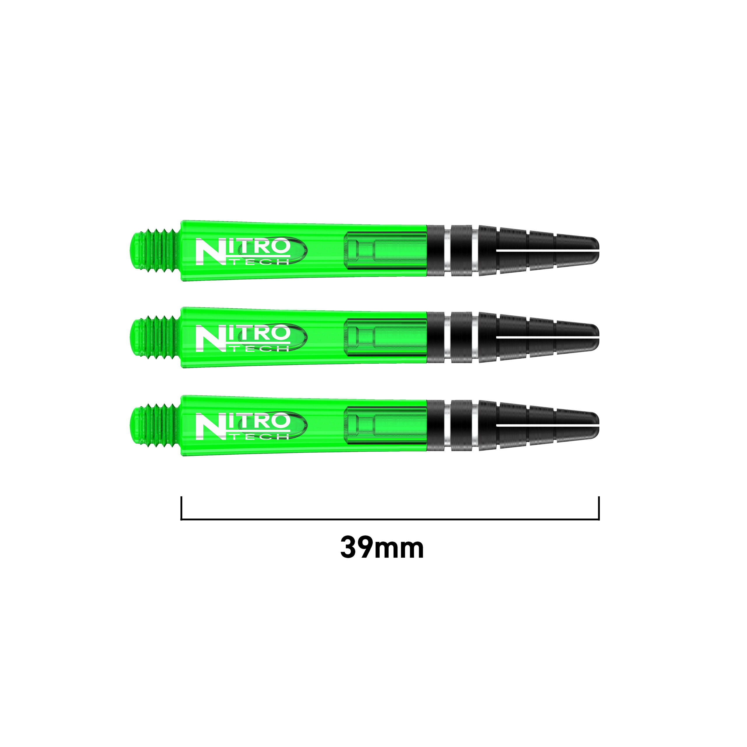 At 39mm, the intermediate length gives you an ideal balance between speed and stability. Because of this, your darts fly straight while still feeling comfortable to release. The vivid green finish also adds a fresh, bold look that makes your setup stand out on the board.