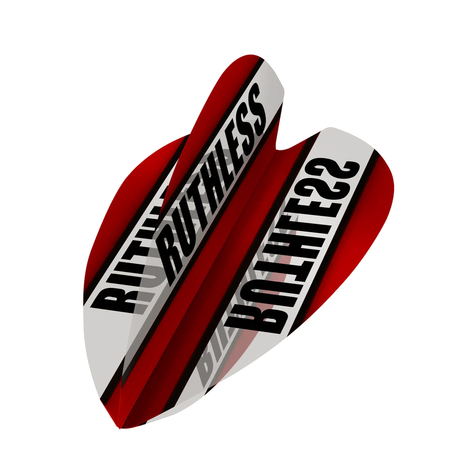 Ruthless Clear Panel Dart Flights are durable 100 micron polyester flights with a retro kite shape that helps darts fly faster. The red design with bold mirrored “RUTHLESS” logos creates a vortex effect in the air. These flights fit all standard shafts and come in a set of 3. They are a great choice for players looking for dependable flights with eye-catching style.