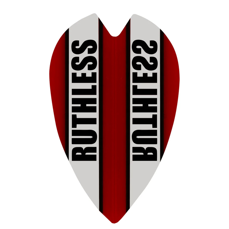 Their retro kite shape helps your darts fly faster with less drag. Each flight features a clear background, two black stripes, and mirrored “RUTHLESS” logos. The design creates a vortex effect that looks sharp in the air.