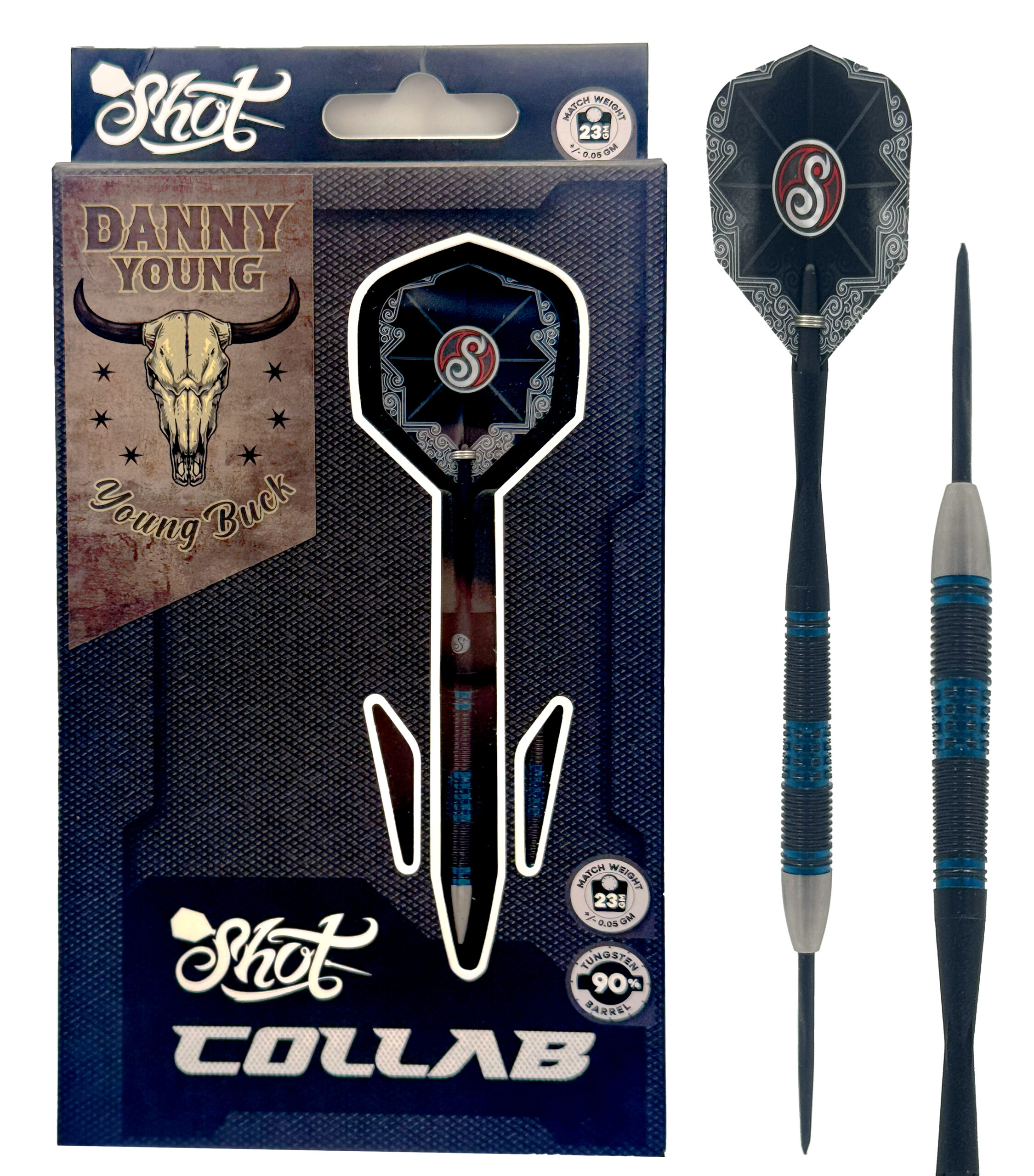 Shot Collab Danny "Young Buck" Young 90% Steel Tip Darts - 23gShot Collab Danny “Young Buck” Young 90% Tungsten Steel Tip Darts – 23g