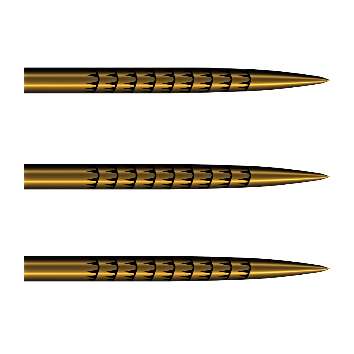 Enhance your throw with the Shot Badlands Tracks Gold Ti Steel Tip Dart Points – 45mm. Designed for players who value both style and performance, these points combine precision engineering with a striking gold titanium coating for extra strength and durability. The superfine cinder grip, expertly engraved at the Shot factory, delivers a steady hold and confident release every time.