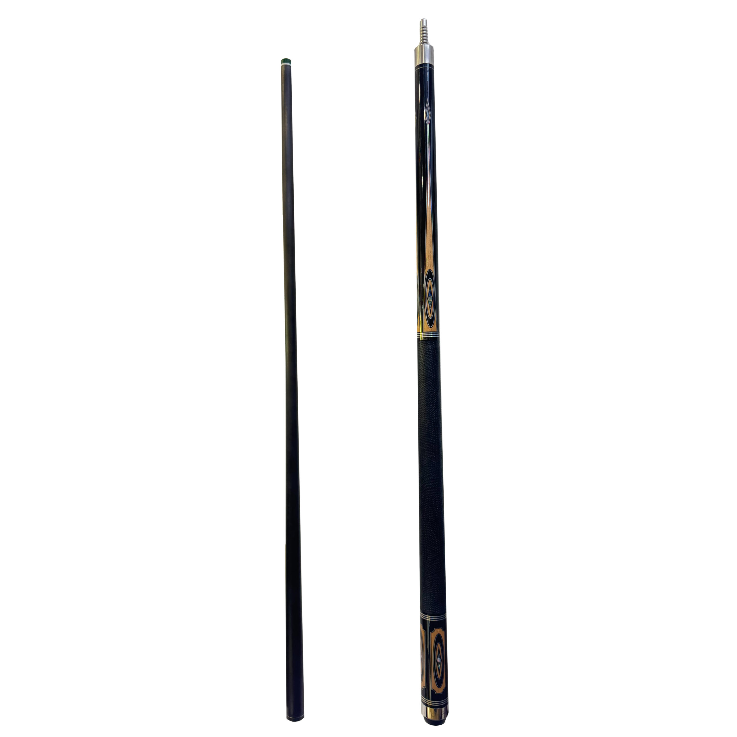 Bring precision and style together with the Smart Cue – Low Deflection Carbon Cue in Black with Graphic Inlay Design. This cue pairs modern carbon fiber performance with a striking visual finish, featuring detailed wood-tone and geometric inlays that stand out against the deep black base.