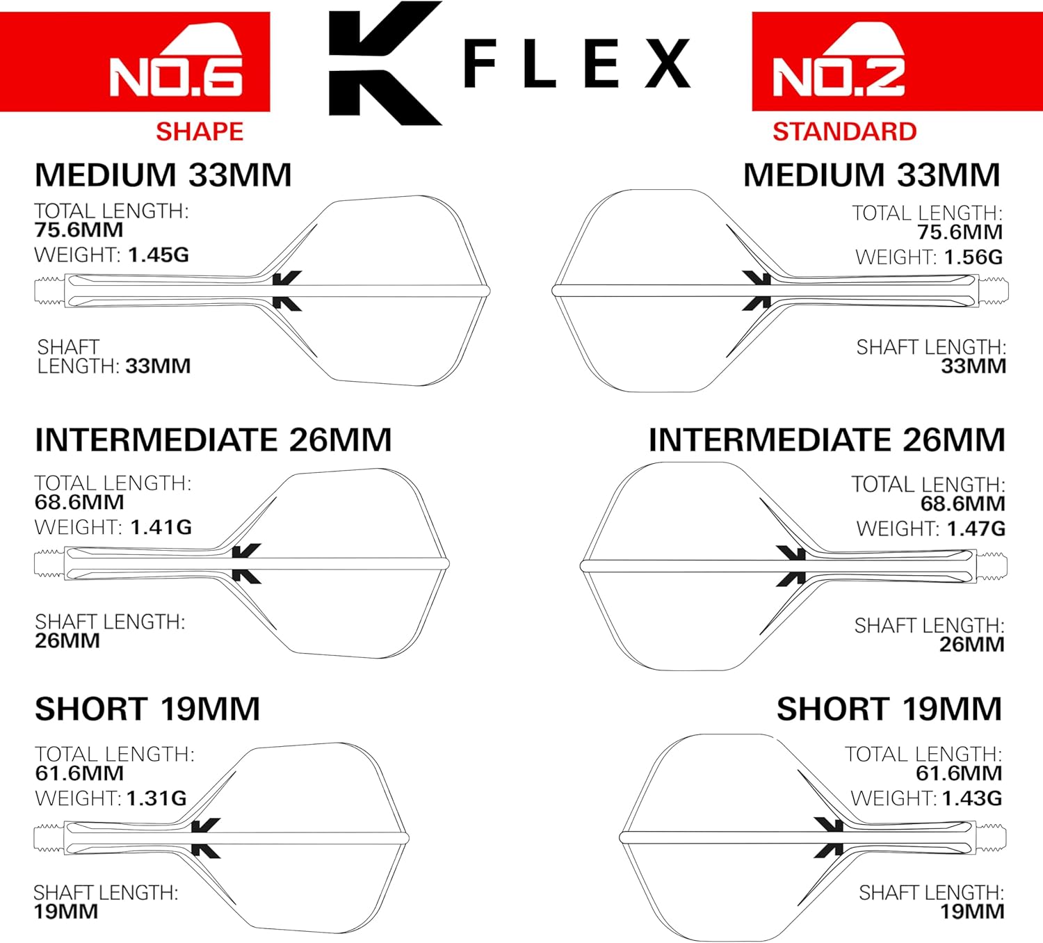 Built as a one-piece flight and shaft system, K-Flex ensures consistent flight angles and long-lasting performance. Additionally, the Intermediate length offers a balanced feel, making it ideal for players seeking controlled stability with a smooth release.