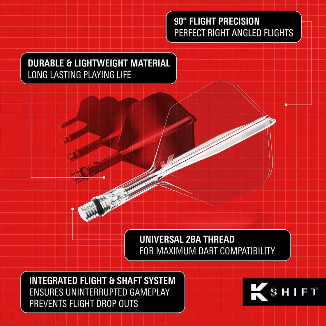 While K-Shift responds intelligently on impact, it remains firm and balanced in flight. Moreover, the fixed 90-degree flight angle ensures reliable aerodynamics on every throw. As a result, players benefit from consistent trajectories, tighter groupings, and improved scoring potential throughout long sessions.