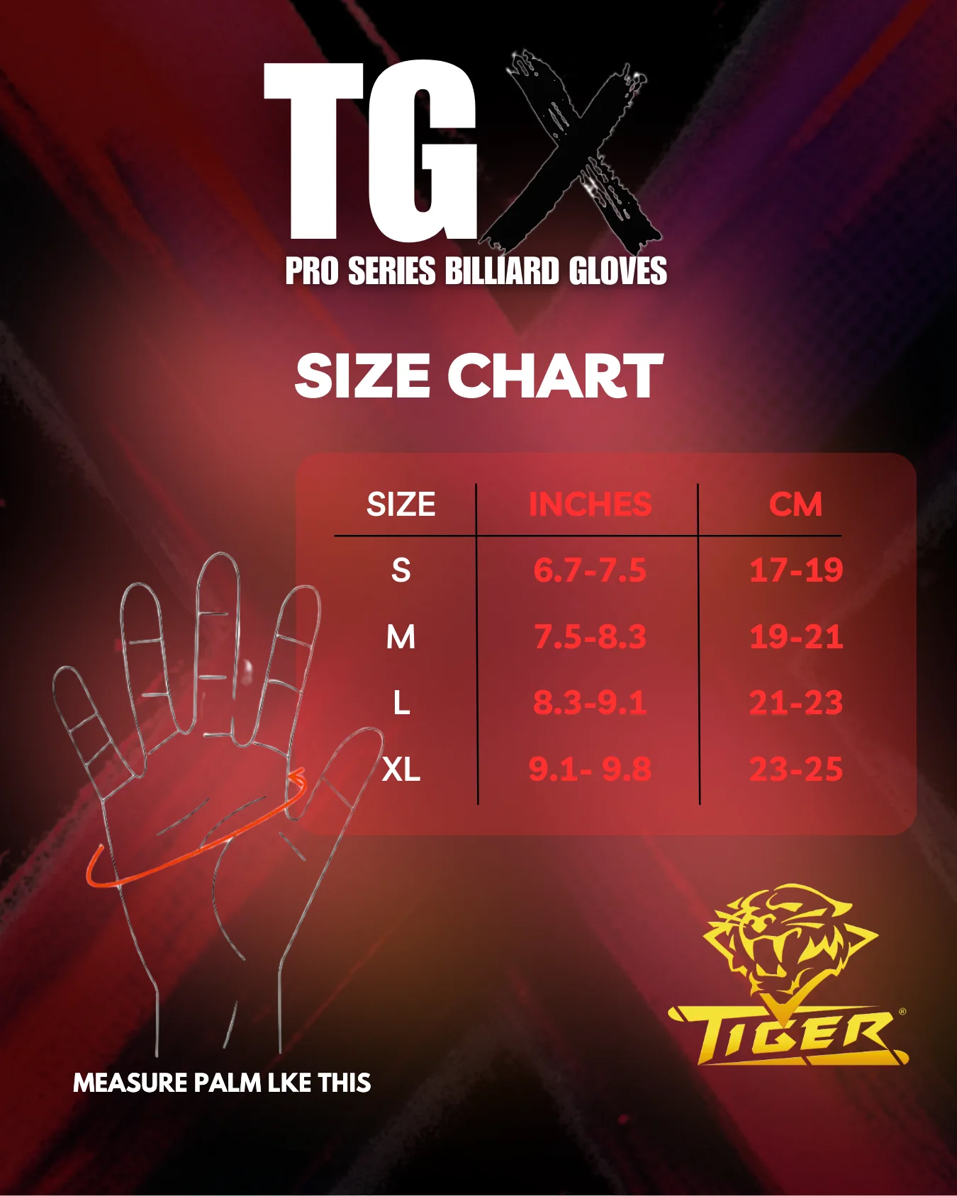 Step up to the table with confidence using the Tiger TGX Pro Series Billiard Glove. Built from the trusted foundation of the original Tiger X glove, this upgraded version delivers a better fit, improved durability, and a clean, modern look.