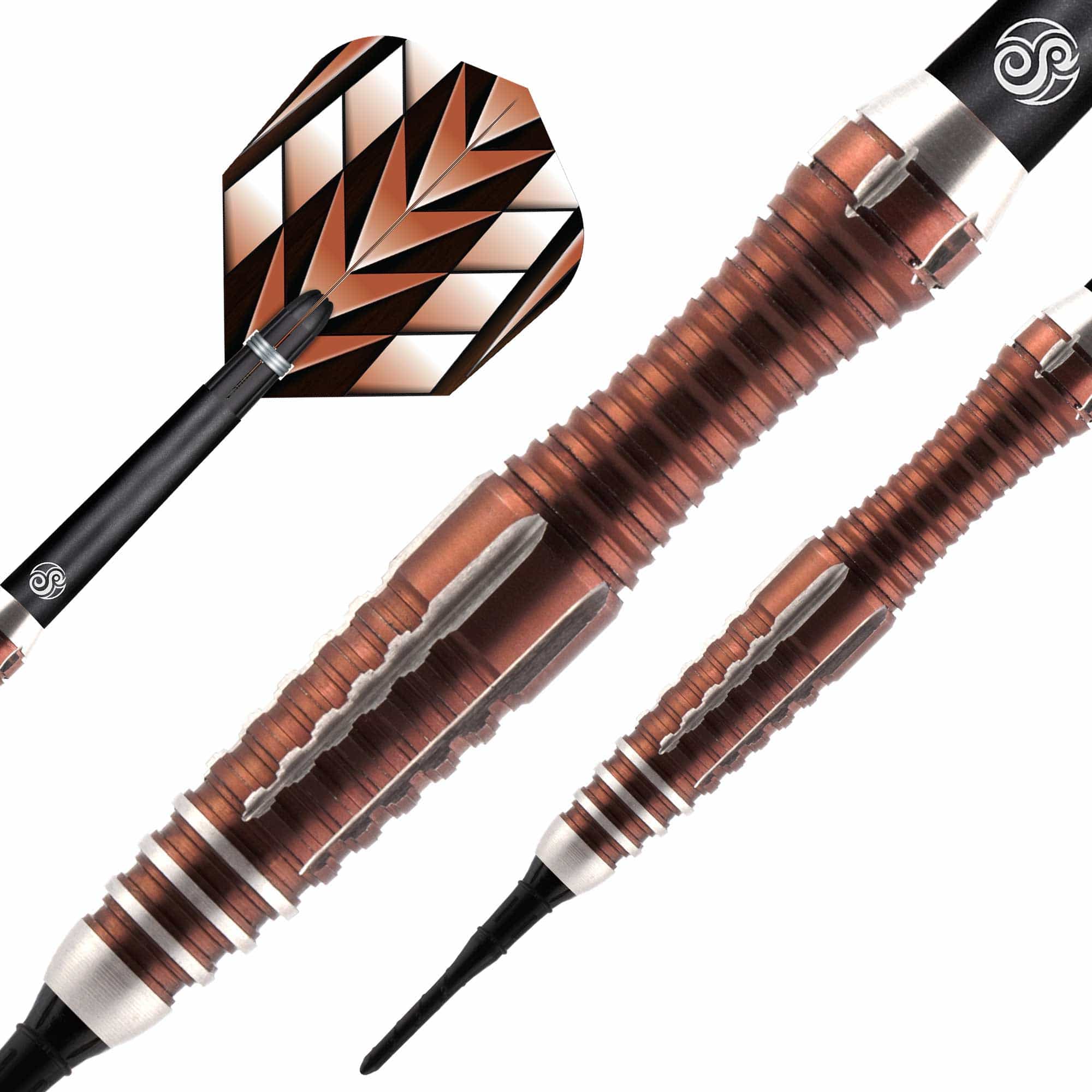 Three 90% tungsten soft tip darts