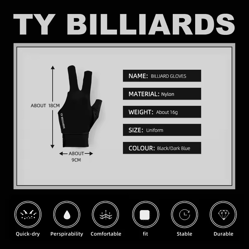 TY Billiard Adjustable Pool Open Finger Gloves - Left Hand - One Size Fits All - BlackTY Billiard Adjustable Pool Open Finger Gloves – Left Hand – One Size Fits All – Black