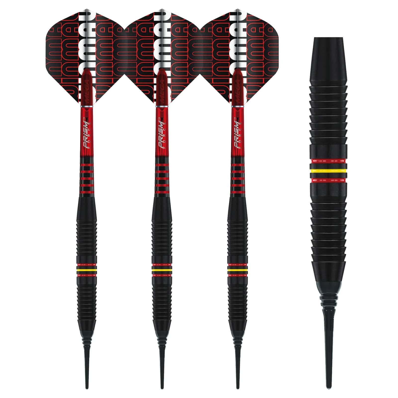 Because the front profile tapers forward, your release stays smooth and simple. The center-balanced weight makes each dart easy to guide, whether you are learning the basics or pushing for tighter groups. The bold black finish, paired with the bright Prism Alpha flights, adds a sporty look that stands out without being distracting.