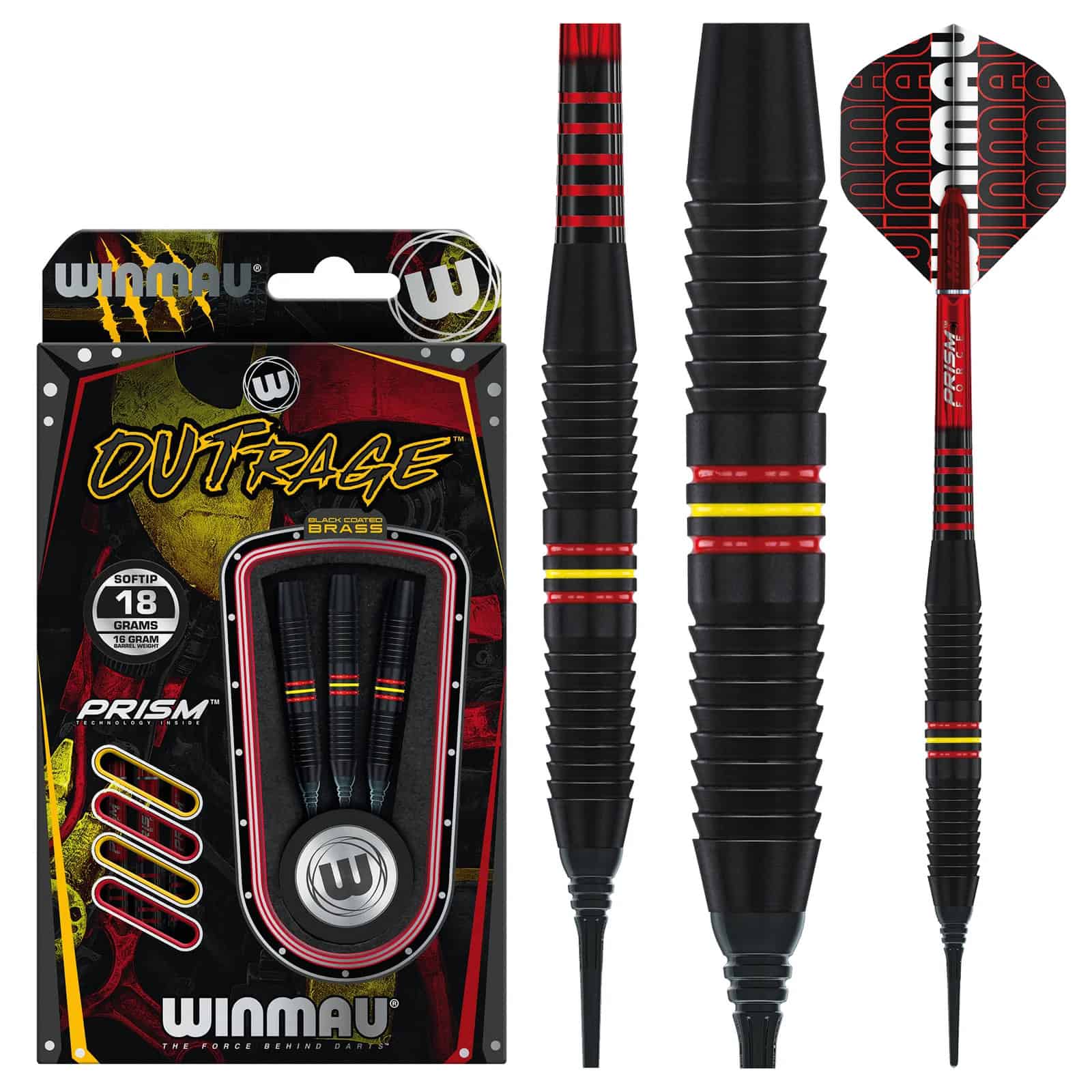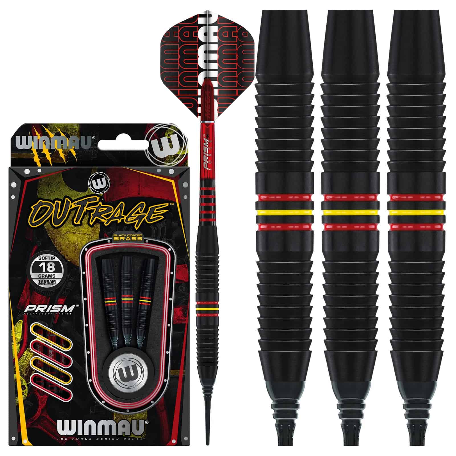 Winmau Outrage Soft Tip Black Coated Brass Dart Set - Barrel 1 - 18gWinmau Outrage Soft Tip Black Coated Brass Dart Set – Barrel 1 – 18g
