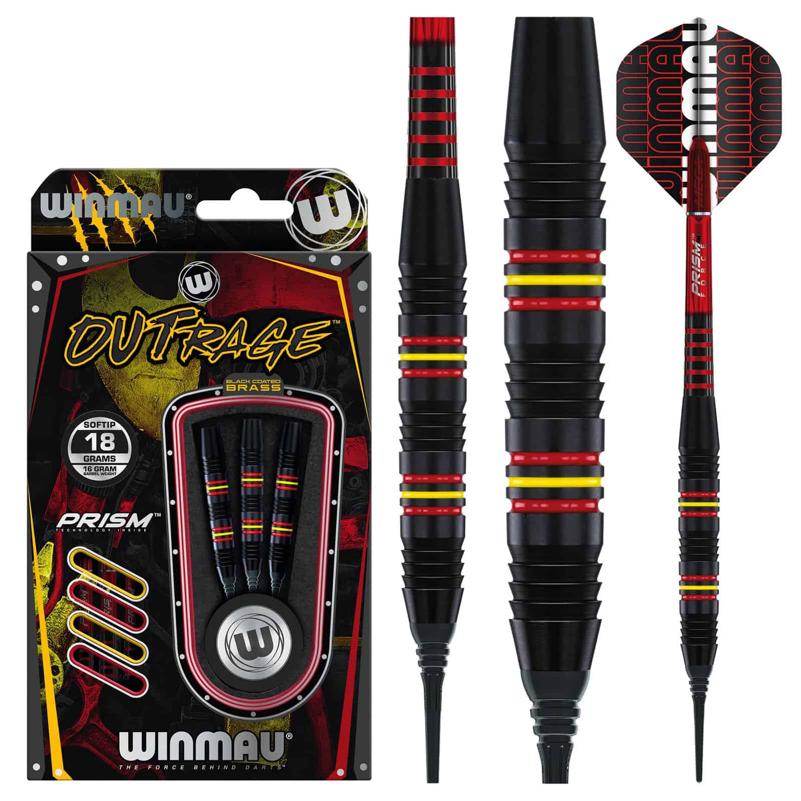 Winmau Outrage Soft Tip Black Coated Brass Dart Set – Barrel 2 – 18g